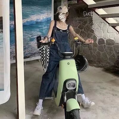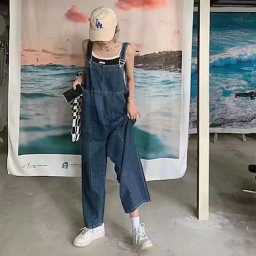 サロペットデニムオーバーオールレディース2024夏の新型日系レトロストリートバックルジーンズゆったりスリムワイドパンツタイツ工装ロングパンツ