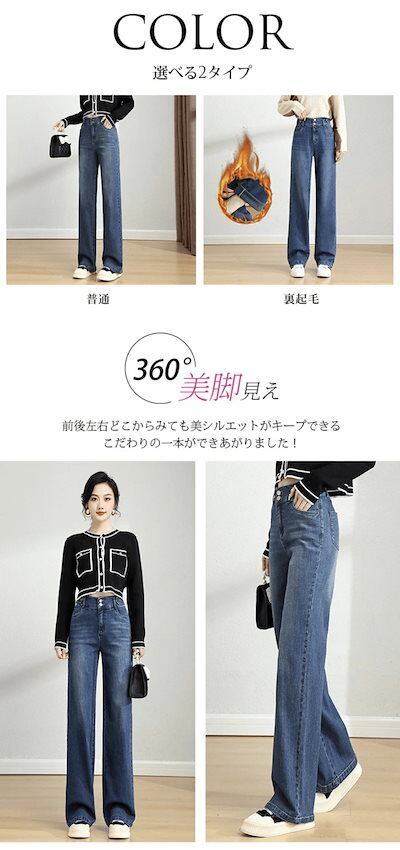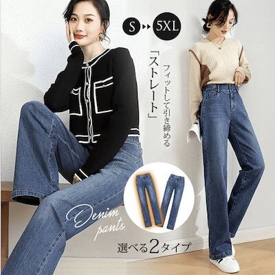 【2個で200OFF】テーパード パンツ デニム 裏起毛 ロング レディース 2タイプ デニムパンツ バギーパンツ 厚手 ハイウエスト ロングパンツ ボトムス ベイカーパンツ ワークパンツ トレート