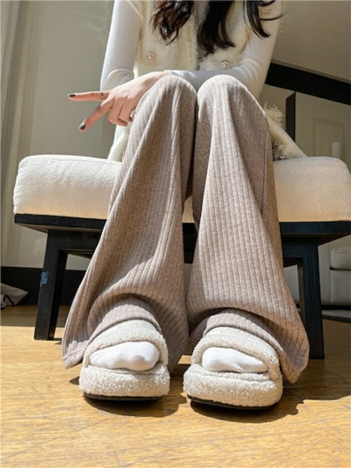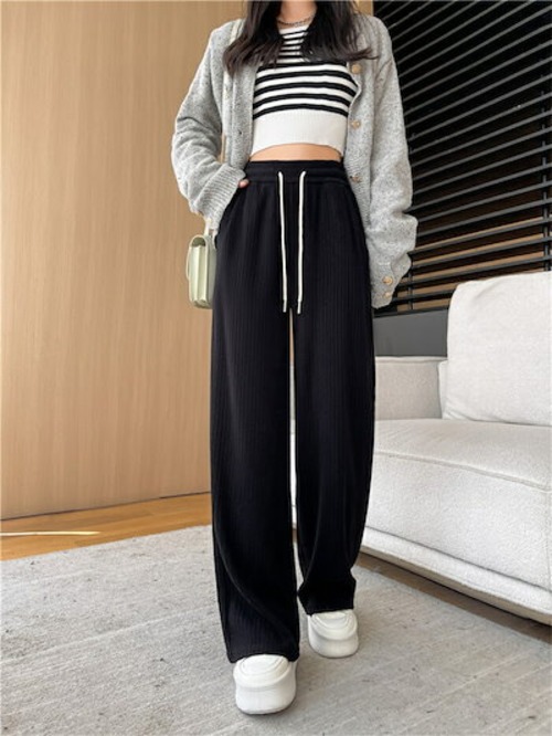 ワイドパンツ 秋冬 レディース ロングパンツ ウエストゴム 美脚 リラックス 防寒 暖い カジュアル ボトムス 体型カバー バギーパンツ イージーパンツ ゆったり ストライプ