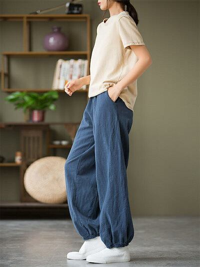ワイドパンツ リネン コットン レディース 春 夏 綿 チノパン ワイドルーズ バギー イージーパンツ スウェットパンツ ジャージー ゆる ウエストゴム レディース ボトムス ゆったり 大きいサイズ