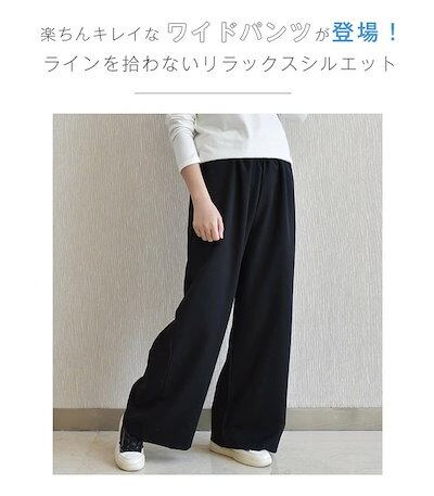 落ち感ありワイドパンツ レディース 春 きれいめ ボトムス ロング丈 大きいサイズ 柔らか ウエストゴム ゆったり 通勤 バギーパンツ イージー 美脚 体型カバー 大人 カジュアル オフィス OL