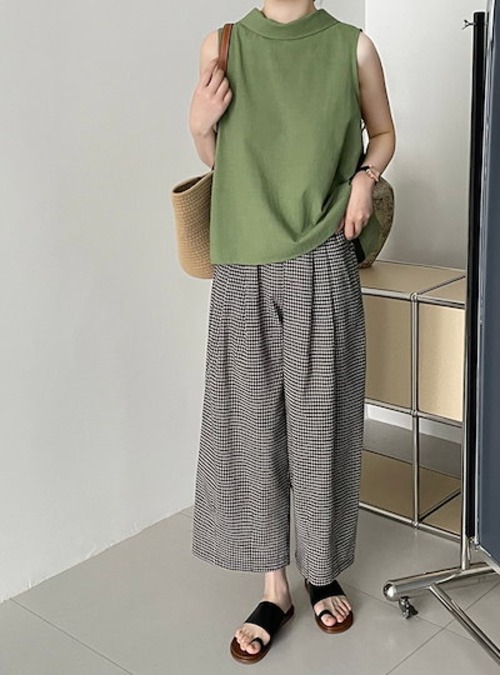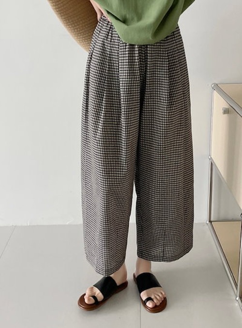 ワイドパンツ レディース アンクル丈 ギンガムチェック柄 イージーパンツ 綿麻風 パンツ ボトムス 大人カジュアル ナチュラル 森ガール ズボンバギー ウエストゴム 大きいサイズ ゆったり 体型カバー