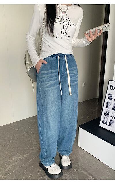 デニムワイドパンツ レディース デニム ワイド パンツ 春秋 ジーンズ ロングパンツ ボトムス イージーパンツ ガウチョ リラックス ウエストゴム ジーパン バギーパンツ ハイウエスト ゆったり おし