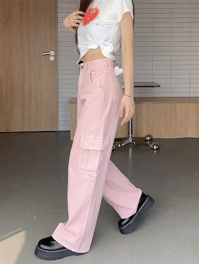 2024 春夏パンツ デニム ジーンズ ワイド ストレート ハイウエスト 脚長効果 美脚効果 細見え ポケット付き 春 白 カジュアル 韓国ファッション レディース お出かけ