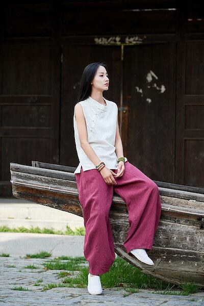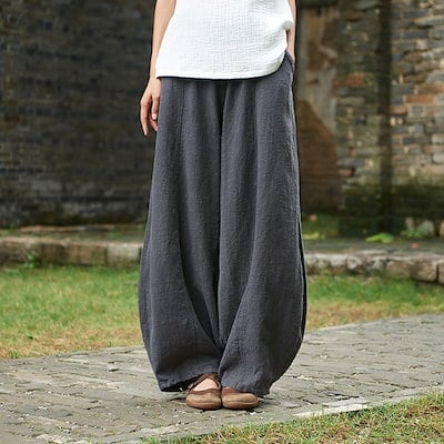 スラックス スラックスパンツ 生地を重くします 垂れ感 レディース綿麻パンツワイドパンツロング ウエストゴム無地 品質 ワイドパンツ 韓国ファッション リネンワイドパンツ