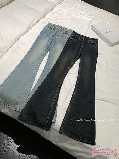 2024 春夏パンツ デニム ジーンズ スキニー ワイドレッグ ハイウエスト 脚長効果 美脚効果 細見え 春 水色 ライトブルー グレー カジュアル 韓国ファッション レディース お出かけ