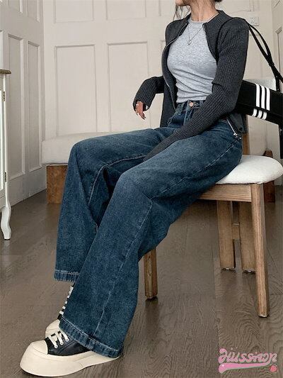 2024 春夏パンツ デニム ジーンズ ワイド ストレート ハイウエスト 脚長効果 美脚効果 細見え ウォッシュ加工 春 カジュアル 韓国ファッション レディース お出かけ