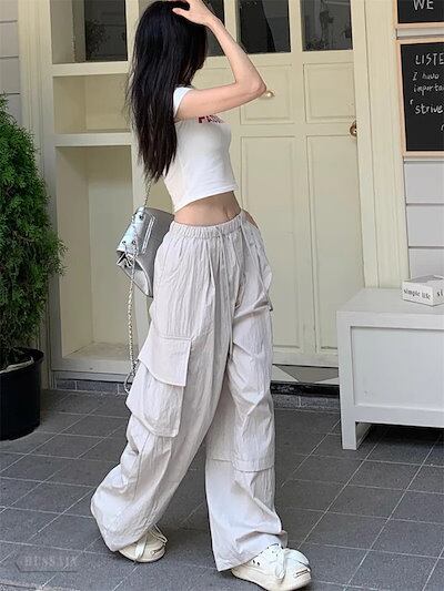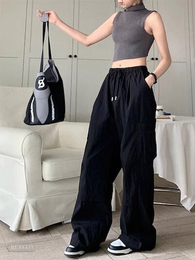 2024 春夏 ボトムス ドロスト ドローストリング ズボン ウエスト調節 カーゴパンツ ルーズ カジュアル系 ゆったり 美脚 脚長 スタイルアップ