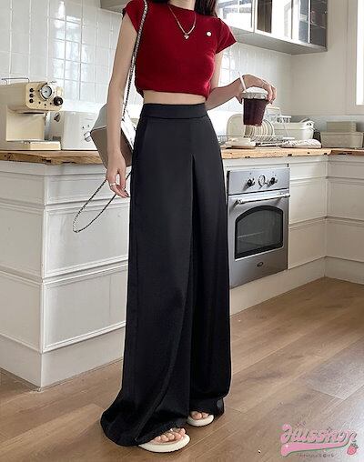 2024 春夏パンツ サテン シルク ワイド ウエストゴム ハイウエスト 脚長効果 美脚効果 細見え ゆったり 春 白 韓国ファッション レディース お出かけ