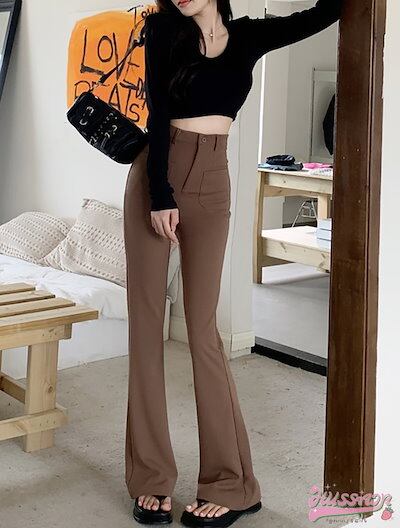 2024 春夏パンツ モップパンツ ワイドレッグ スリム ハイウエスト 脚長効果 美脚効果 細見え 春 黒 茶色 韓国ファッション レディース お出かけ