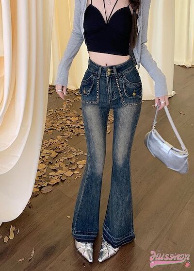 2024春夏パンツ デニム ジーンズ スキニー ワイドレッグハイウエスト 脚長効果 美脚効果 細見え ウォッシュ加工 春 カジュアル 韓国ファッション レディース お出かけ