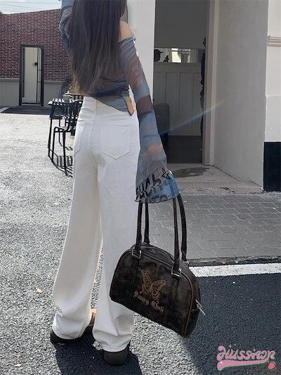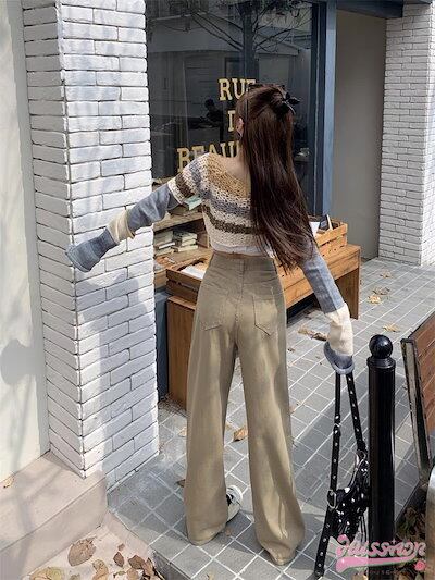 2024春夏パンツ デニム ジーンズ ワイド ストレート ハイウエスト 脚長効果 美脚効果 細見え ウォッシュ加工 春 白 茶色 カジュアル 韓国ファッション レディース お出かけ