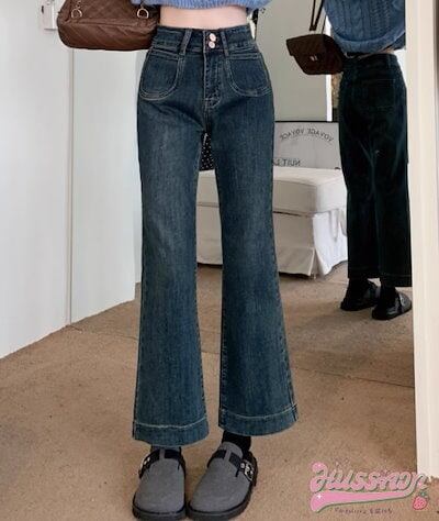 パンツ デニム ジーンズ ワイドレッグ ハイウエスト 脚長効果 美脚効果 細見え 春 ウォッシュ加工 カジュアル 韓国ファッション レディース お出かけ