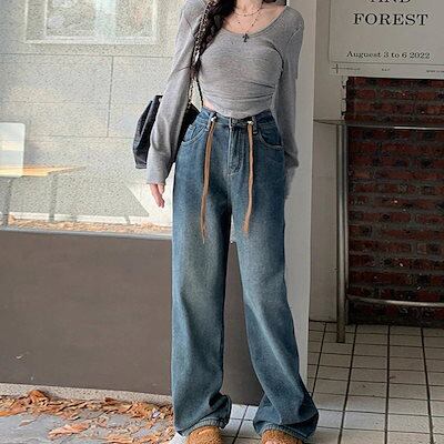 【短/長2タイプ】人気 デニムパンツ レディース ゆったり ワイド ハイウエスト フレア ダメージ 大きいサイズ レディースロングパンツ ストレート ストレッチ スキニー ジーンズ け メガ割