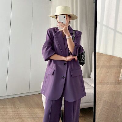 スーツセットアップおしゃれブレザー202春秋韓国版スリムダウン感ワイドパンツスーツ2点セット レディース 卒業式?入園式?説明会 新生活応援ビジネス特集
