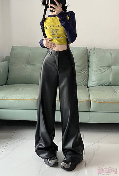 アメリカン ワイドパンツ PUパンツ ファッション モップロングスリムパンツ スタイルアップ カジュアル きれいめ ゆるっと サイズストリート 大人っぽ ズボンお姉さん ユニセックスシルエット秋冬