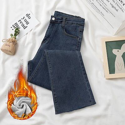 【2枚購入で 2oo円OFF!】レディースジーンズ 裏起毛 厚手 暖かい ロングパンツ ハイウエスト デニムボトムス ロングデニム スキニーパンツ ワイドパンツ 裏起毛ファッション デニムパンツ