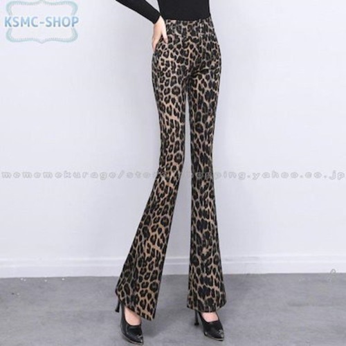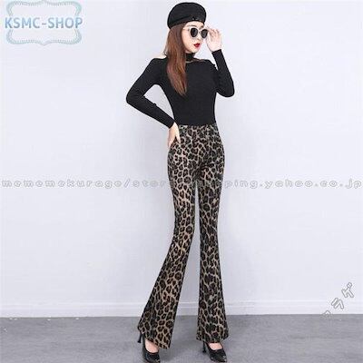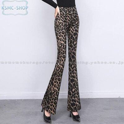 パンタロン レディース 長ズボン パンツ ヒョウ柄 フレアパンツ ガウチョパンツ ハイウエスト スキニーパンツ 欧米復古風パンツ 美シルエット