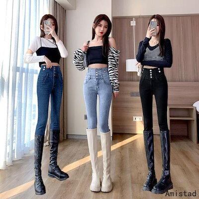 デニム レディース スキニーパンツ ストレッチ ハイウエスト スキニー デニムパンツ ジーンズ レギパン パンツ ボトムス 伸縮性 無地