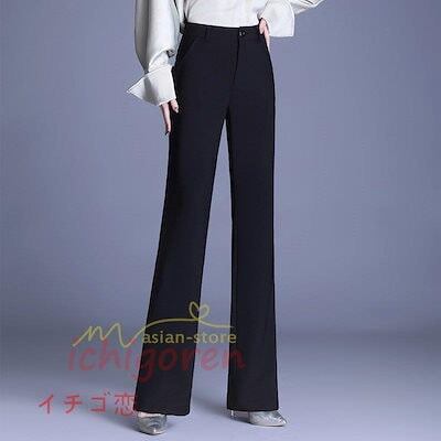 スラックス ゆったり 着痩せ カジュアルパンツ レディース ハイウエスト 美脚ライン ストレート シンプル ロングパンツ 通勤 通学 デイリーコーデ フォーマル