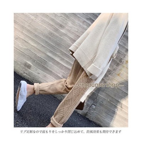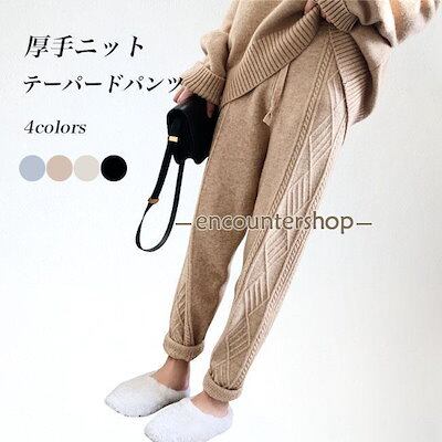 ニットパンツ レディース テーパードパンツ 厚手ニット 9分丈 レトロ ケーブル編み サルエルパンツ ニット ボトムス ウエストゴム 秋冬 ズボン