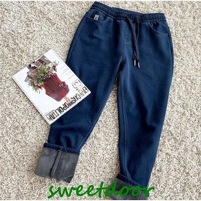 テーパードパンツ 裏起毛 レディース 冬 サルエルパンツ デニム風パンツ ロング丈 ロングパンツ ボ 秋 冬 着痩せ カジュアル 暖かい