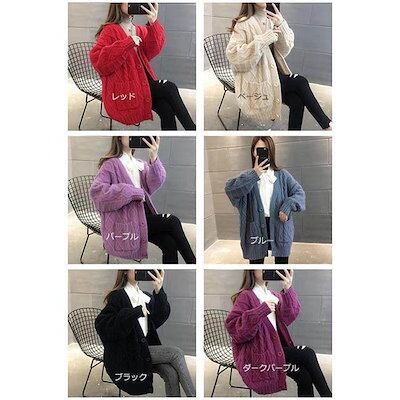 ざっくり カーディガン セーター ケーブル編み ロングカーデ 毛糸 レディース 前開き トップス 長袖 無地 ゆったり 春 体型カバー 厚手 シンプル d