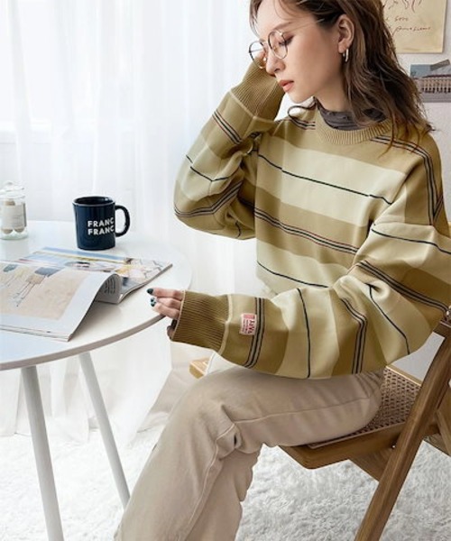 Classical Elfjavaジャバ コラボ トップス ニット レディース セーター マルチボーダー メンズ ユニセックス 男女兼用 レトロ ゆったり オーバーサイズ クルーネック