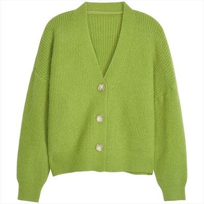 ショート丈Vネックニットカーディガントップスショート袖あり長袖ドロップショルダー萌袖襟なしリブ前開きリブニットかわいい大人可愛いシンプルカジュアル大人おしゃれお洒落大人女子ルーズ無地春秋1020レディ