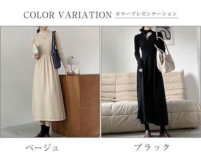 ロングワンピースニットワンピースワンピーススーツレディースクルーネックリブニット通勤オフィス秋冬着心地ベーシックワンピースゆったり切り替え通勤ワンピ長袖エレガント体型カバーゆったり着やせ2030405