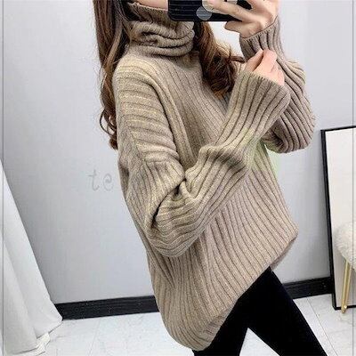 ニットセーター レディース 秋冬40代 トップス 長袖 厚手 ハイネック ニットソー ふわもこ ニットセーター 無地ショート丈 メリヤス ニットセーター着痩せ通勤