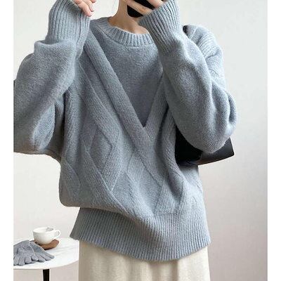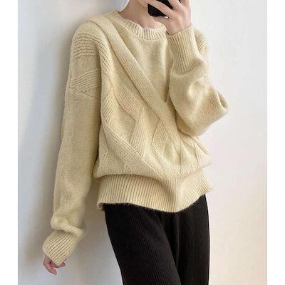 ニットセーターレディースニットセーター秋冬クルーネックおしゃれ冬リブニット長袖プルオーバー大人暖かい防寒ゆったり無地きれいめ通勤