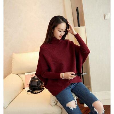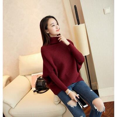 ニットセーターレディースニットタートル襟長袖大人ゆったり着やすいセータードルマンスリーブ人気秋冬