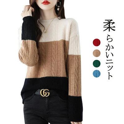 ニットセーター グルーネック セーター 長袖 レディース 秋冬 ニット プルオーバー バイカラー オシャレ 柔らかい 暖かい 防寒 ゆったり トップス 大人 女性用 カットソー カジュアル 着回し 秋