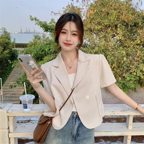 ショット丈 半袖 フランス 体型カバー 夏 ニューデザイン 上着 ゆったり スーツジャケット レディース スーツ ファッション ジャケット