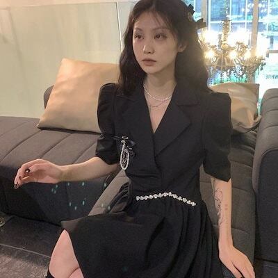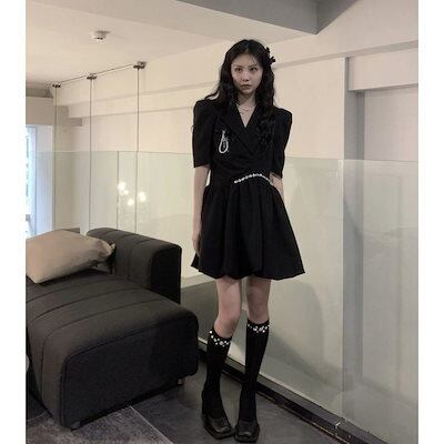 スーツワンピース ファッション 着痩せ スカート ニューデザイン Aライン ウエスト引き締め 夏 レディース