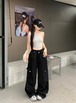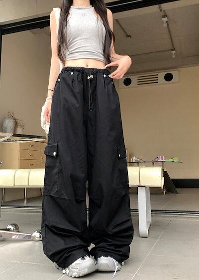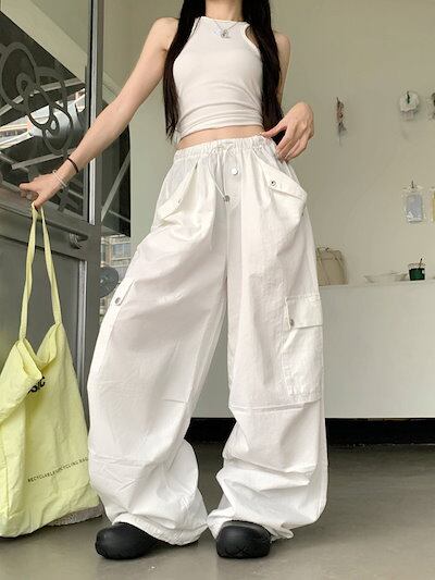 2024春夏パンツ カーゴパンツ ロング丈 ワイド ストレート ハイウエスト 美脚効果 脚長効果 細見え 夏 白 黒 おしゃれ かわいい 韓国ファッション レディース お出かけ