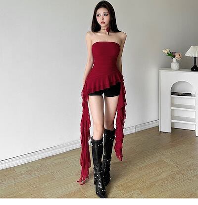 2024 春夏トップス 半袖 Tシャツ 韓国 レイヤード風 長袖 着痩せ スリム かわいい セクシー ラウンドネック おしゃれスリーブ カジュアルコーデ丈 ファッション系レディース お出かけ T