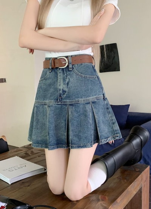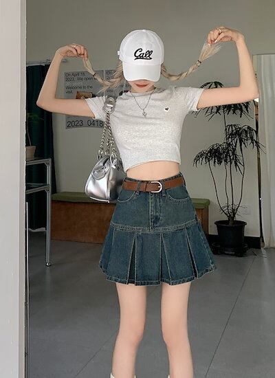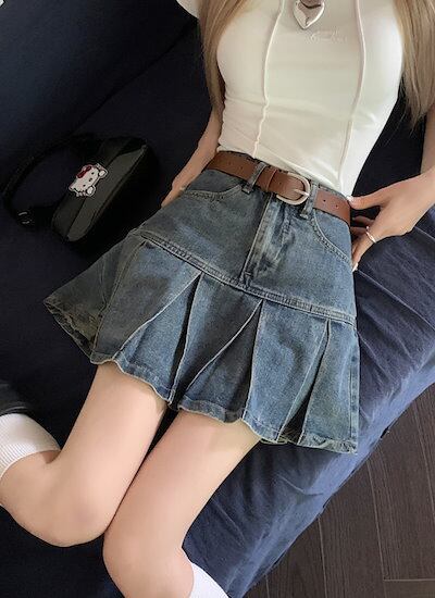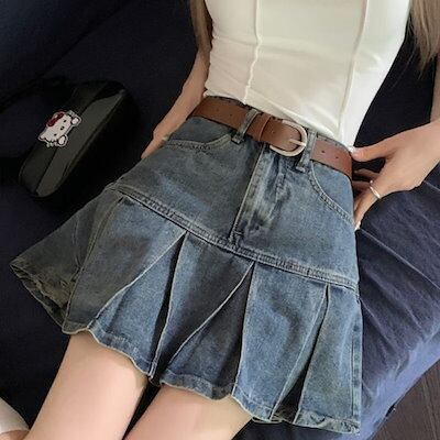 2024夏 韓国デニムスカート ショートスカート 膝丈 レディース シンプル 可愛い おしゃれ コーデ カジュアル 大人