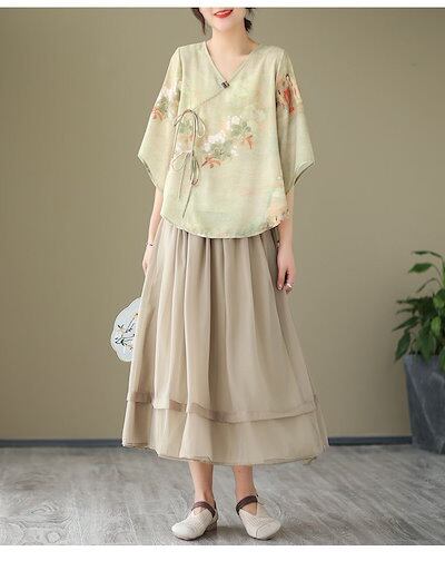 「ファットガール」 民族風 上下セット 春夏 レディース 大人 30代 40代 中年 体型カバー 大きいサイズ セットアップ 中華風 ジャージ 卒業式 ママ フォーマル スーツセットアップ 9 メガ割
