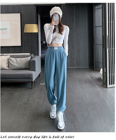 サマースポーツパンツレディースレギンスパンツスリムカジュアルパンツルーズストレートレッグパンツワッフルツーウェアワイドレッグパンツ 母の日
