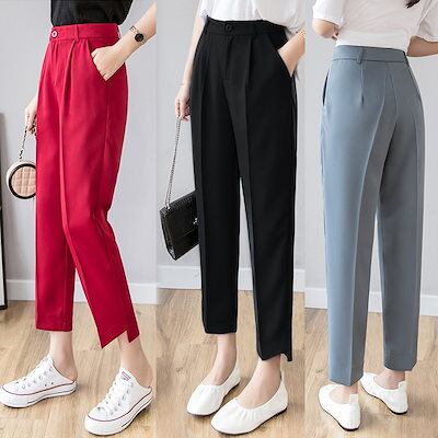 テーパードパンツ レディース 春 夏 オフィスカジュアル ハイウエスト 9分丈 ズボン