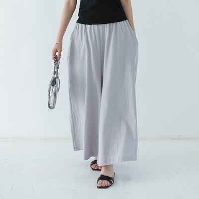 2024無地ンコットン袴ルーズでロングサマーレディースワイドレッグカジュアルスリップポケットパンツ女