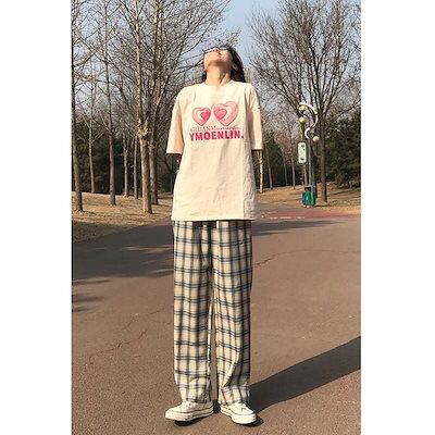 メガ割ワイドパンツ スキニーデニムパンツ 春秋 デニムパンツ ウエストゴムパンツ ジョガーパンツフレアパンツ ハイウエスト美脚着痩せパンツ太め体型カバーレディースワイドパンチェック