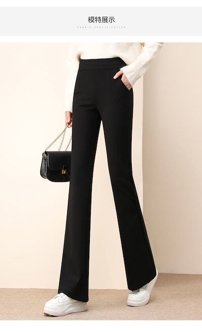 女性マイクロフレアパンツハイウエスト韓国風オールマッチカジパンツスリム職業黒ズボン