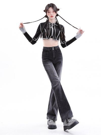 無地シンプルスリム ジーパン レディースレ脚長効果トロフレアデニムデニムフレアパンツ