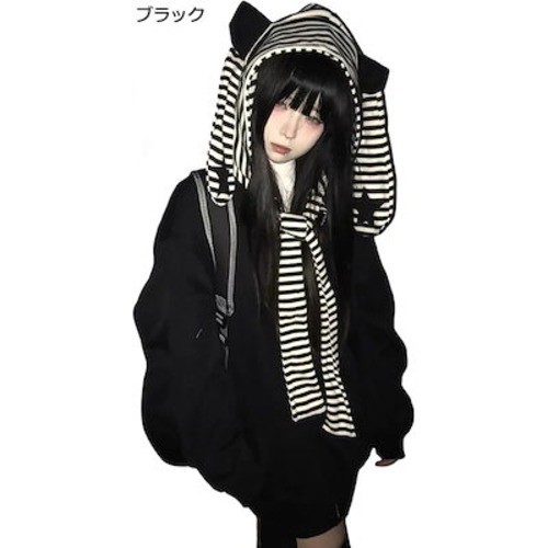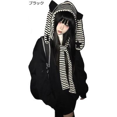 パーカー レディース ウサギ ストライプ 切り替え かわいい 耳付き フード付き 量産型 トレーナー ストリート系 大きいサイズおすすめ商品