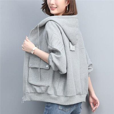 秋作パーカージャケットレディースジップアップパーカー体型カバーチュニック長袖ゆったりカジュアルアウター