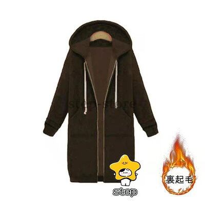 パーカーコートレディース裏起毛ロングパーカーレディーストレンチコートフード付きコート秋冬アウタースプリングコート