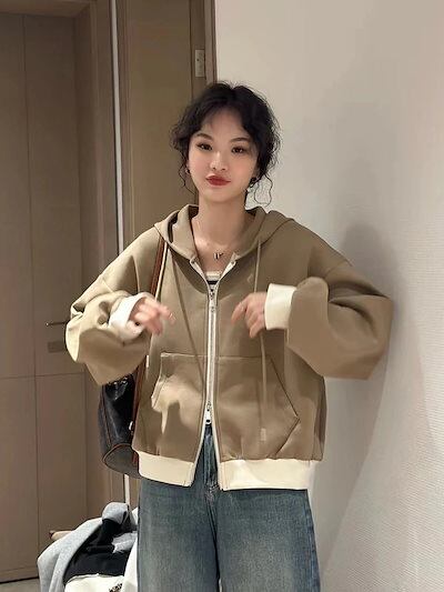 大人気 2024韓国ファッション秋新作 フード付き パーカー アウターコートジャケット トップス ロングカーディガン 秋アウター パーカー 秋ジャケット トレンチコートアウターレディース